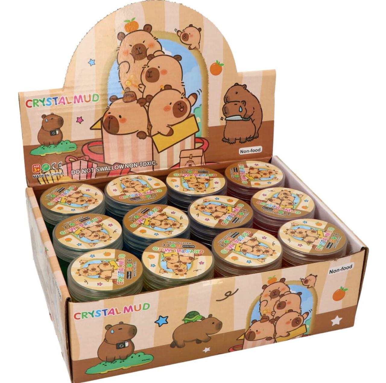 Slime en tarro con figura de capibara, divertido y relajante para niños.